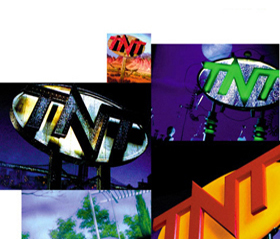 TNT encourages the viewer to share the excitement of American movis as if they were comfortable friends who live deeply in their memories. The TNT logo represents our heroic nature and dwells within the American landscape as a beacon. A series of TNT logo signs, backdrops, and sets were created in key programming genres and shot with humor and mischievous visual tricks that openly play on the illusions of filmmaking.